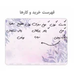 تخته وایت برد سمات مدل پلنر رو یخچالی کد 04 سایز 20×30 سانتی متر به همراه ماژیکپلنر رو یخچالی سمات به همراه ماژیک مخصوص مگنت دار محصولی مناسب برای برنامه ریزی و مدیریت است. سطح این محصول قابل پاک کردن بوده و پشت آن به طور کامل با آهنربای نرم پوشش داده شده تا بدون لغزش روی یخچال بچسبد. پلنر رو یخچالی سمات به گونه ای طراحی و ساخته شده که بتوانید به راحتی با ماژیک روی آن بنویسید و همچنین نوشته های خود را پاک کنید. طراحی منحصر به فرد این محصول با رویکرد مینیمال در عین سادگی با دقت انجام شده و امکان استفاده افقی و عمودی را می دهد. این طرح دارای نمایش روزانه، هفتگی و یک ماه کامل است. برای استفاده از این ترکیب جهت برنامه ریزی کل ماه فقط کافی است از روز شروع ماه تاریخ را وارد کنید. همچنین میتوانید از این طرح برای برنامه ریزی هفتگی و یا روزانه استفاده کنید. علاوه بر این میتوانید فهرست خرید، غذا و یا وظایف را وارد نمایید؛ و یا اینکه به عنوان یادداشت پیامی بنویسید یا نقاشی بکشید. این محصول دارای انعطاف بوده و با سطوح منحنی یخچال های مختلف سازگار است.