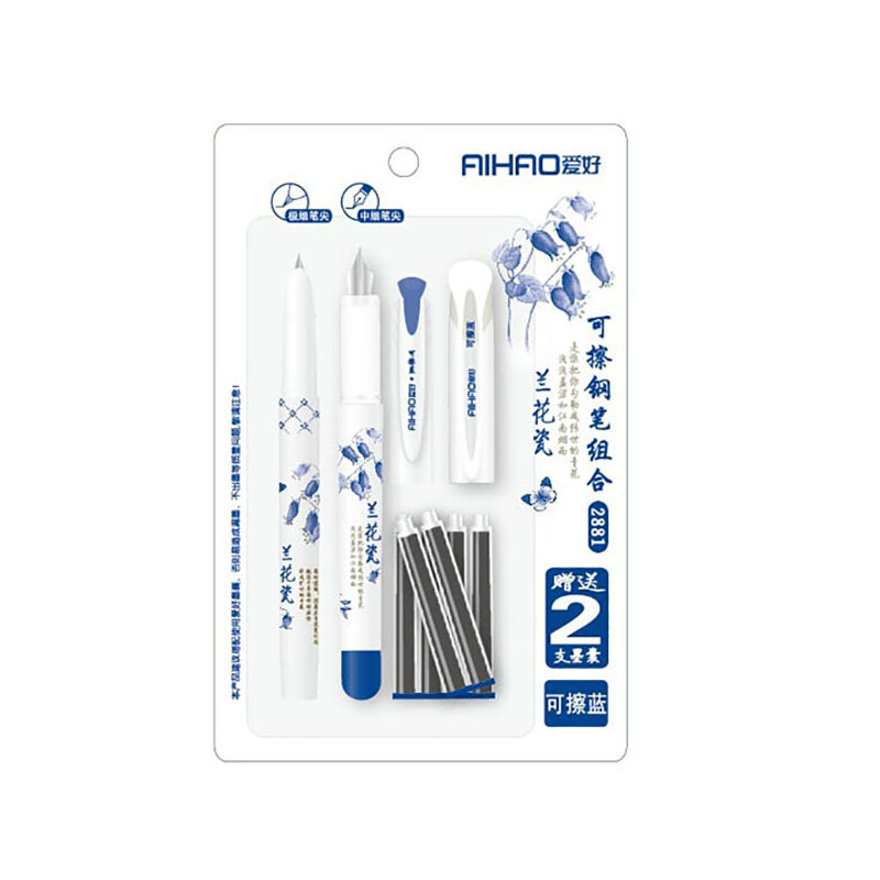 آیهائو یکی برترین برند های چین می باشد. بسته دو عددی خودنویس آیهائو مدل 2881 به همراه 6 عدد جوهر فشنگی می باشد و شما را از خرید جوهر تا مدت ها بی نیاز می کند. طرح روی این خودنویس ها بر زیبایی دستان شما به هنگام نوشتن می افزاید و حس خوبی را به همراه دارد. در این بسته دو نوع خودنویس وجود دارد و می توانید خودتان انتخاب کنید که چه زمانی با کدام بنویسید یا هر کدام را با چه رنگ جوهری استفاده کنید.