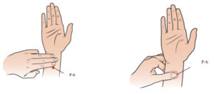 این مچ بند با فشـار بر نقطه ی P۶ ، رشته هاي عصبي کوچک ميلين دار که در عضلات قرار گرفته اند را تحریک می کند در نتیجه با ترشـح اندورفین ها باعث خنثی شدن ایمپالس های تهوع در مغز می شود و در نهایت موجب کاهش آشفتگی و تهوع می گردد.